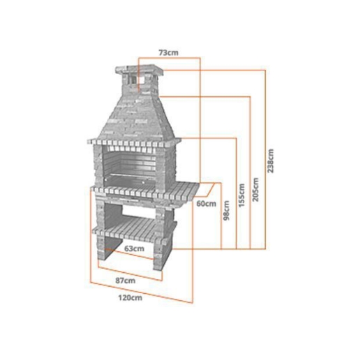 • Barbecue en pierre avec cheminée et un plan de travail. Fabriqué au Portugal